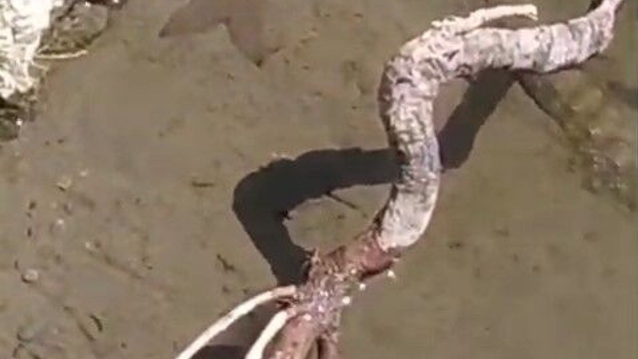 Batman’ın Sason Çayı’nda yılan, avladığı balığı duyduğu ses üzerine bıraktı. O anlar cep telefonuyla kaydedildi.