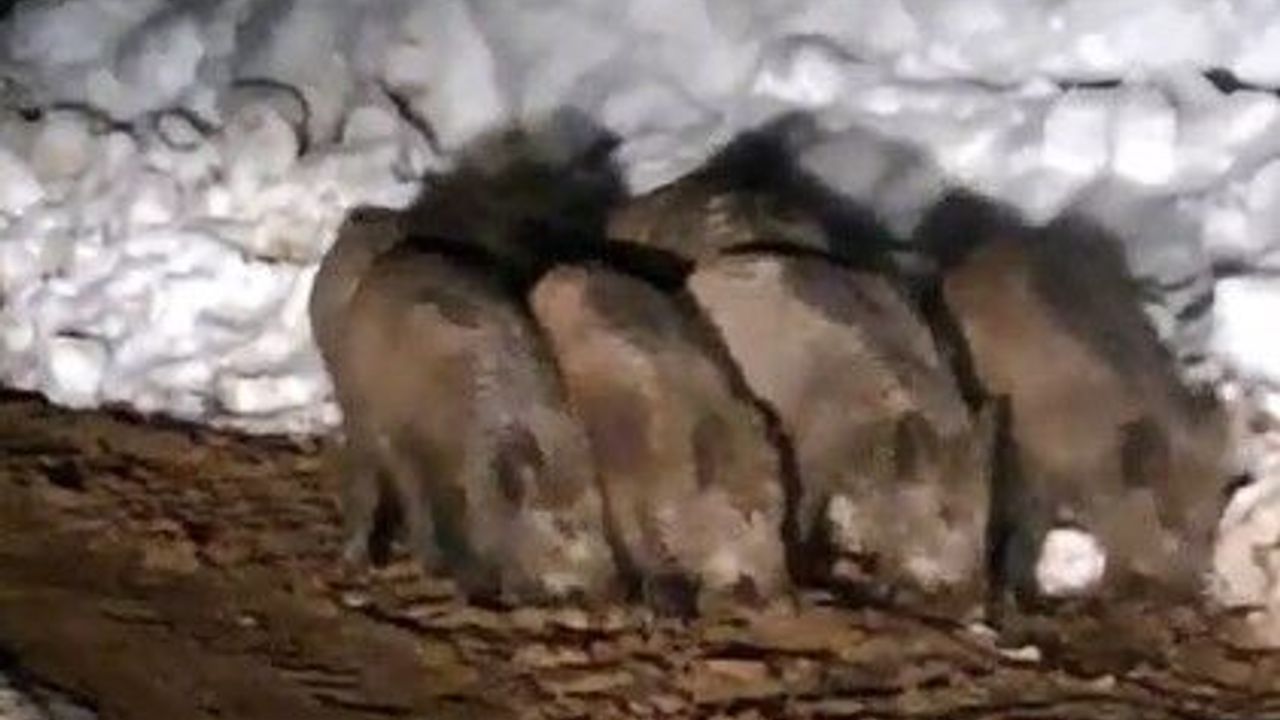 Bitlis’in Hizan ilçesinde köy yoluna inen domuz sürüsü, köylüler tarafından cep telefonuyla kaydedildi.