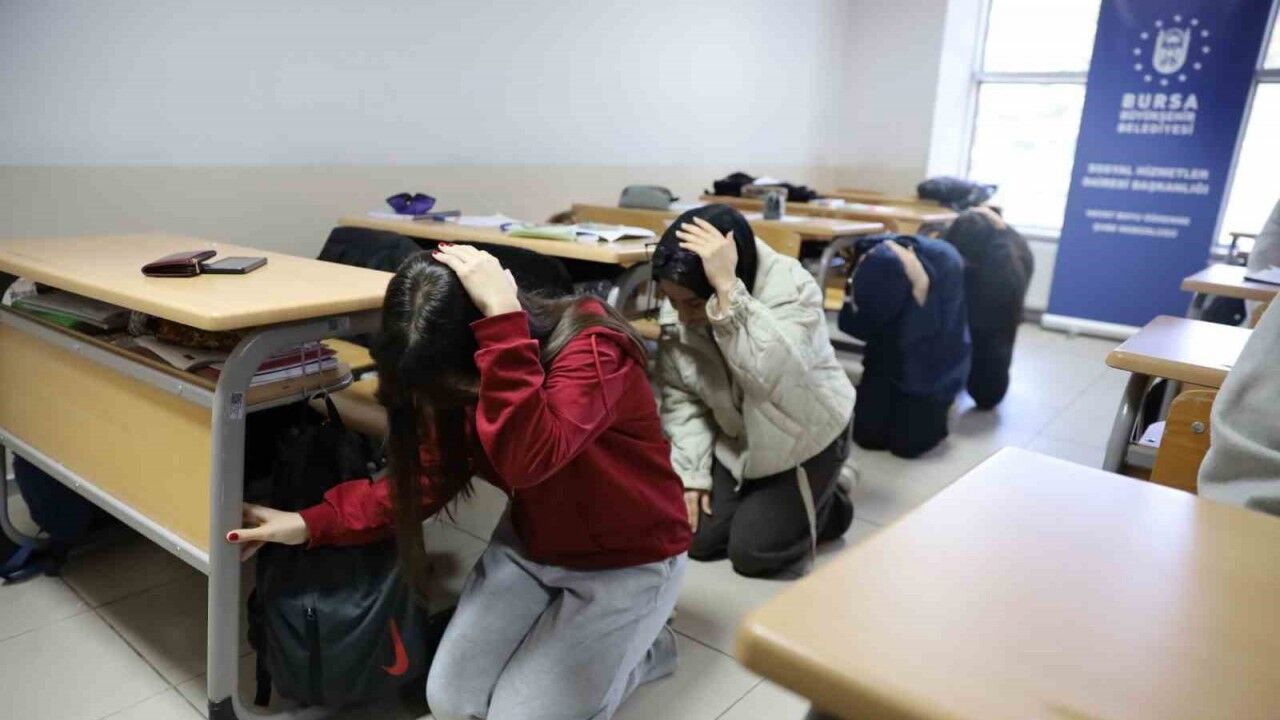 Bursa Büyükşehir Belediyesi, olabilecek afet ve acil durumlara karşı hazırlıklı olmak amacıyla Hürriyet YKS Hazırlık Merkezi’nde deprem ve tahliye tatbikatı gerçekleştirdi.