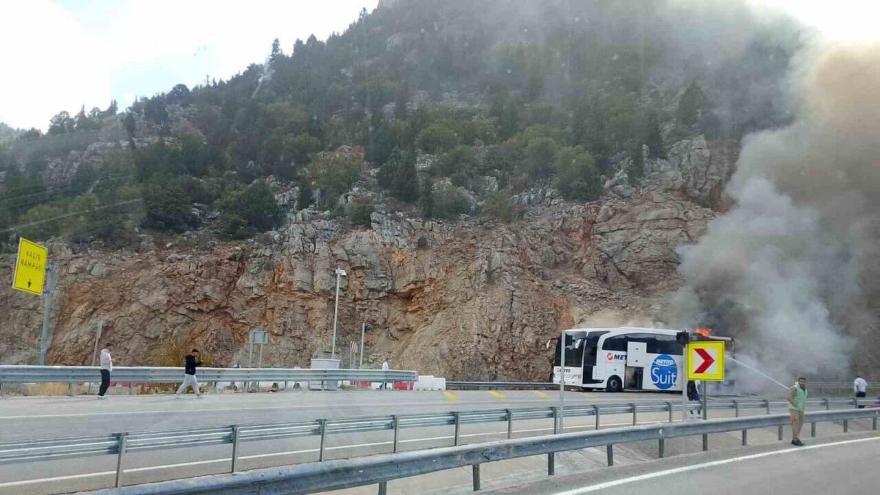 Olay, öğle saatlerinde Seydişehir Antalya kara yolunda ilçe merkezine 7. kilometre kala kaçış rampası mevkiinde meydana geldi. Edinilen bilgiye göre, Antalya’nın Alanya ilçesinden Seydişehir ilçesi istikametine seyir halinde olan plakası ve sürücüsünün ismi öğrenilemeyen Metro Turizm otobüsünün motor kısmında yangın çıktı. Yangının fark edilmesi üzerine araç kontrollü olarak durdurularak yolcular tahliye edildi. İhbar üzerine olay yerine sevk edilen itfaiye ekiplerince yangın kontrol altına alınarak söndürüldü. Otobüste büyük çapta maddi hasar meydana gelirken, yangın nedeniyle bir süre trafiğe kapatılan kara yolunda trafik, polis ekiplerince kontrollü olarak sağlandı.