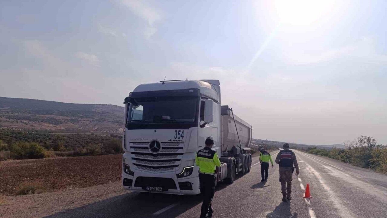 Kilis’te trafik güvenliğini sağlamak amacıyla Jandarma Trafik Timleri tarafından yük taşıyan araçlara yönelik tonaj ve branda denetimi gerçekleştirildi.