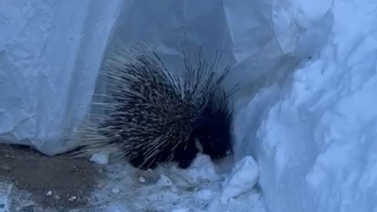 Hakkari'nin Yüksekova ilçesinde nesli tükenme tehlikesi altında olan Hint oklu kirpi görüntülendi.