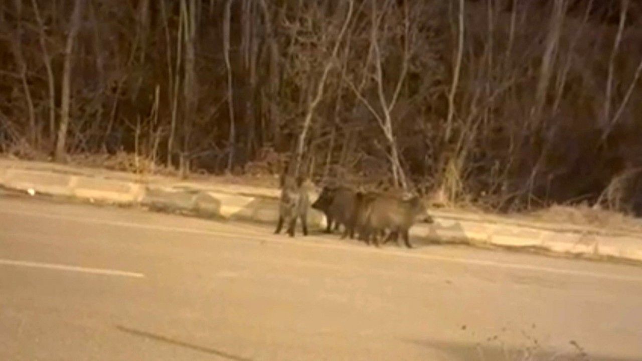 Hakkari’nin Yüksekova ilçesinde yiyecek bulmakta zorlanan domuz sürüleri, kış şartlarının ağırlaşmasıyla birlikte farklı noktalarda görüntülendi.