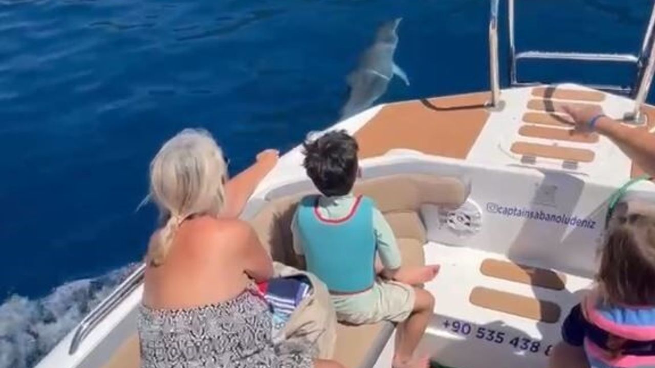 Fethiye’nin Ölüdeniz Mahallesi’nde, doğanın eşsiz güzelliklerinden biri olan Kelebekler Vadisi açıklarında eşsiz bir manzara yaşandı. Süfa Kökten’in kullandığı tekneyle denize açılan turistler, aniden beliren yunusların eşsiz gösterisine şahitlik etti. Yunuslar, teknenin etrafında dakikalarca adeta bir dans sergilerken, bu unutulmaz anlar teknedeki yolcular ve kaptan tarafından cep telefonlarıyla kaydedildi.