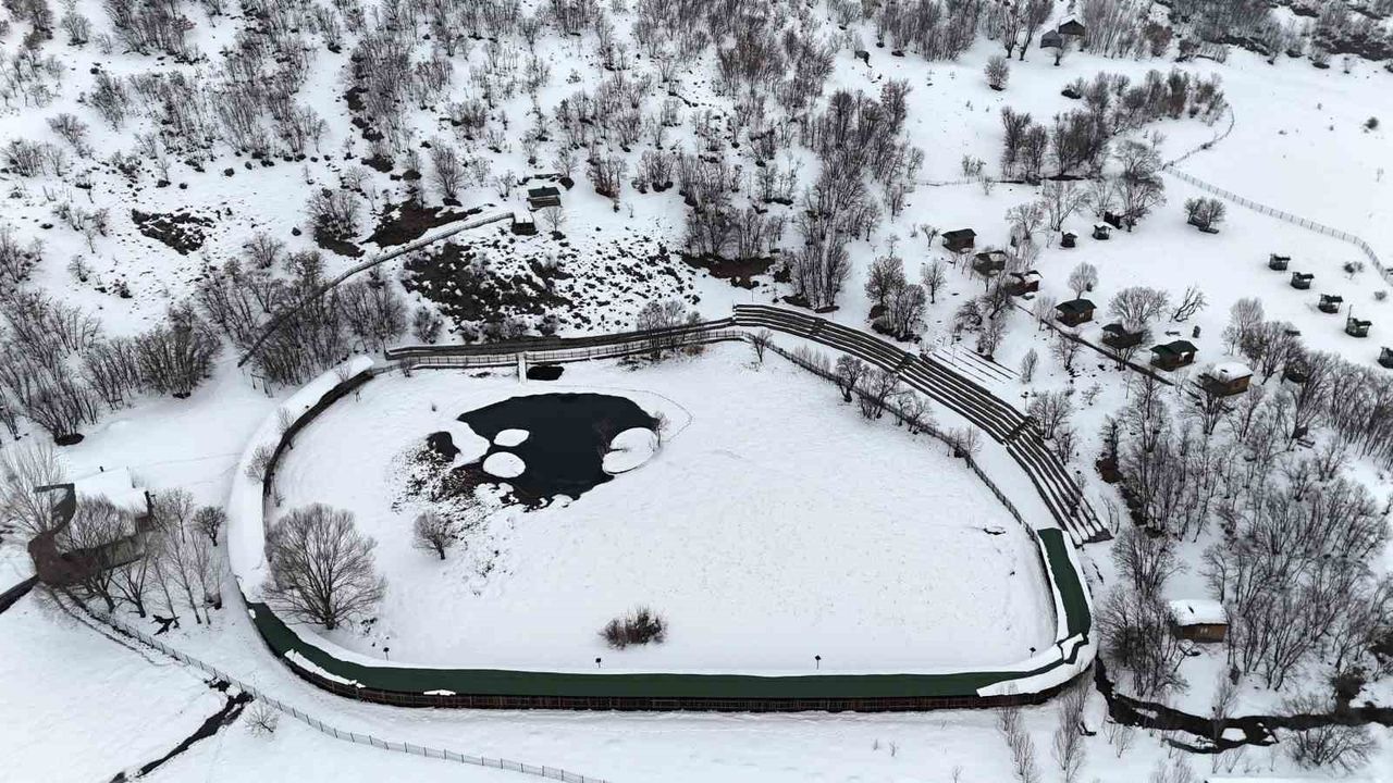 Bingöl'ün Solhan ilçesinde yer alan Yüzen Adalar, etkili olan kar yağışının ardından beyaz örtüyle kaplandı. Ortaya çıkan kartpostallık manzara dron ile görüntülendi.