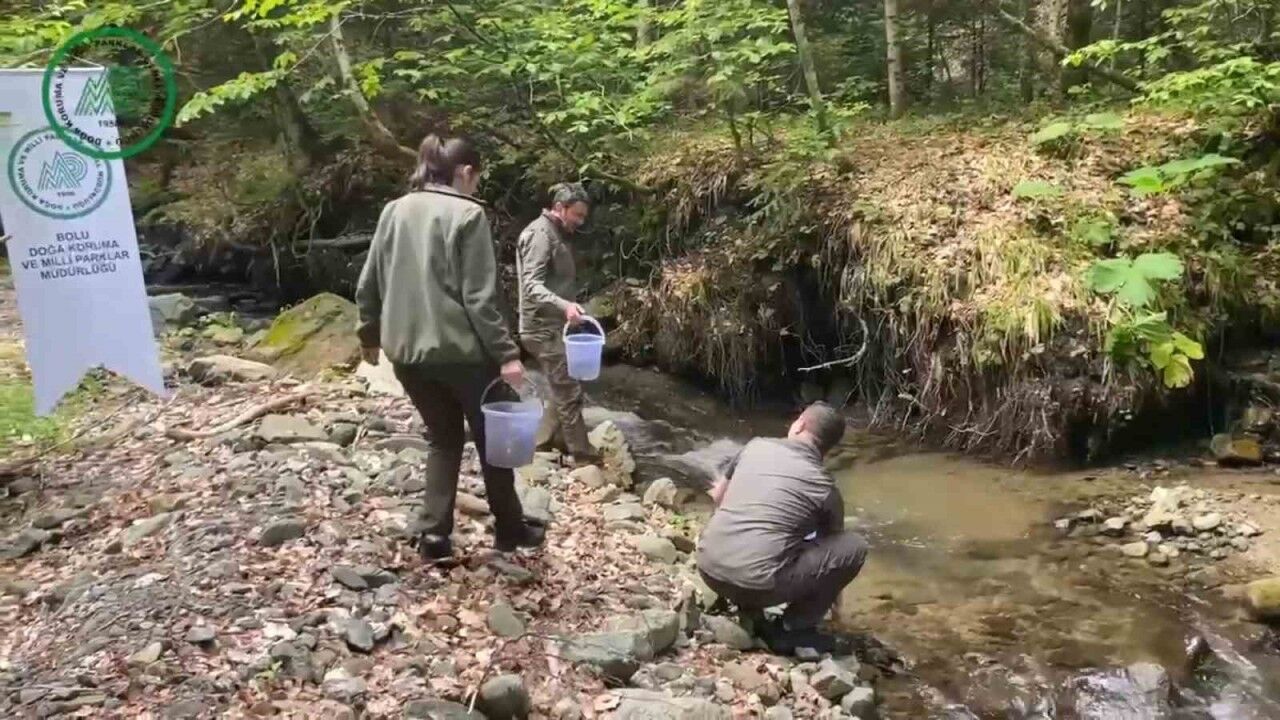 Bolu’da orman içi sulardaki doğal alabalık popülasyonlarını artırmak amacıyla yüzlerce alabalık doğal yaşam alanlarına salındı.