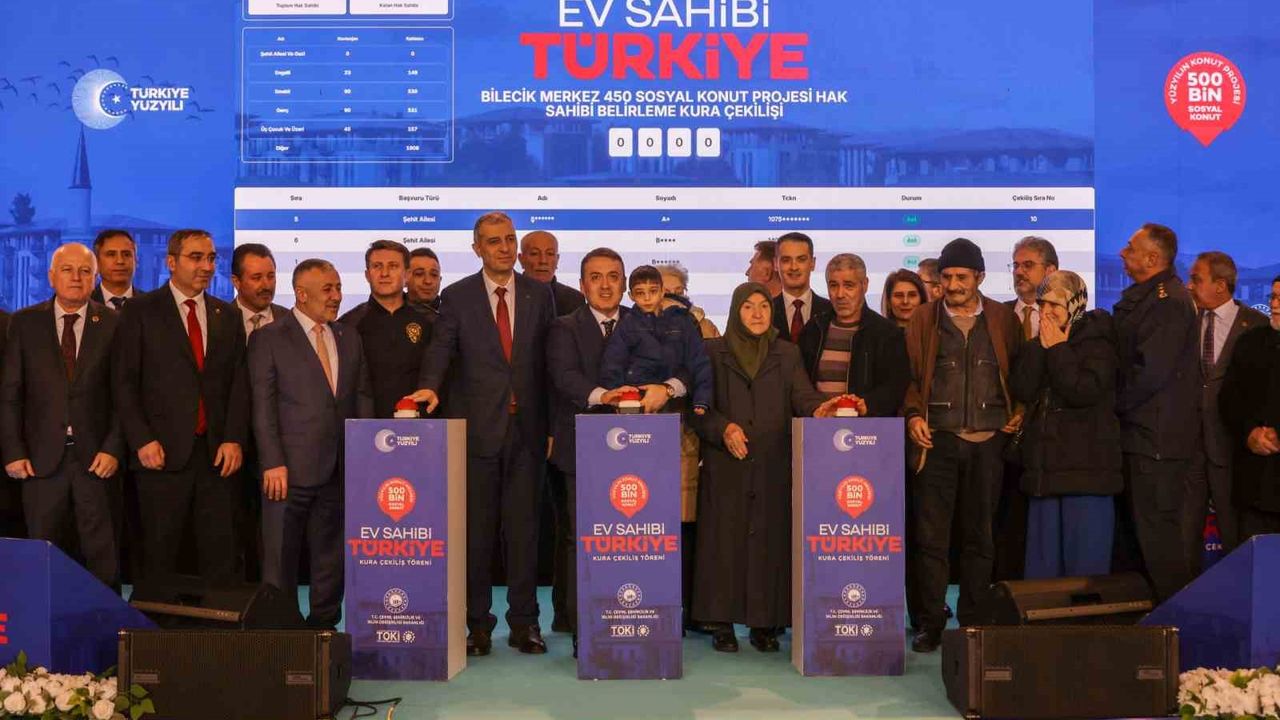 Vali Sözer son olarak, 'İlimizde yürütülen bu süreçte 11 bin 632 başvuru bulunmaktadır. Bugün noter huzurunda gerçekleştirilecek kura çekimiyle hak sahipleri şeffaf ve güvenilir bir şekilde belirlenecektir. Devletimiz, 'İnsanı yaşat ki devlet yaşasın' anlayışıyla her şartta vatandaşının yanında olmaya devam etmektedir. Sosyal konut projeleri; dar gelirli vatandaşlarımızdan gençlerimize, emeklilerimizden şehit yakınları ve gazilerimize kadar toplumun her kesimini kucaklayan sosyal devlet anlayışının en güçlü ve en somut yansımalarından biridir. Bugün kurasını çekeceğimiz bu konutlar yalnızca birer yapı değil; çocuklarımızın güvenle büyüyeceği, ailelerimizin huzur bulacağı, komşulukların güçleneceği, sosyal hayatın canlanacağı sıcak yuvalardır. Aynı zamanda sağlamlığıyla güven veren, planlı ve modern yapısıyla nitelikli yaşam alanlarıdır. Kura çekilişinin Bilecik ilimize, ülkemize ve hak sahibi tüm vatandaşlarımıza hayırlı ve uğurlu olmasını temenni ediyorum. Yeni yuvalarına kavuşacak tüm hemşehrilerime sağlık, huzur ve mutluluk dolu bir yaşam diliyorum' ifadelerine yer verdi.
