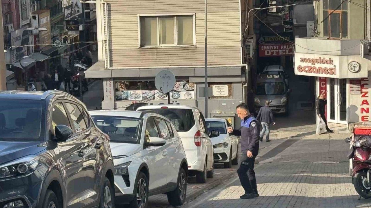 Zonguldak’ta zabıta ekipleri kaldırım işgali yapan araçlara cezai işlem uyguladı.