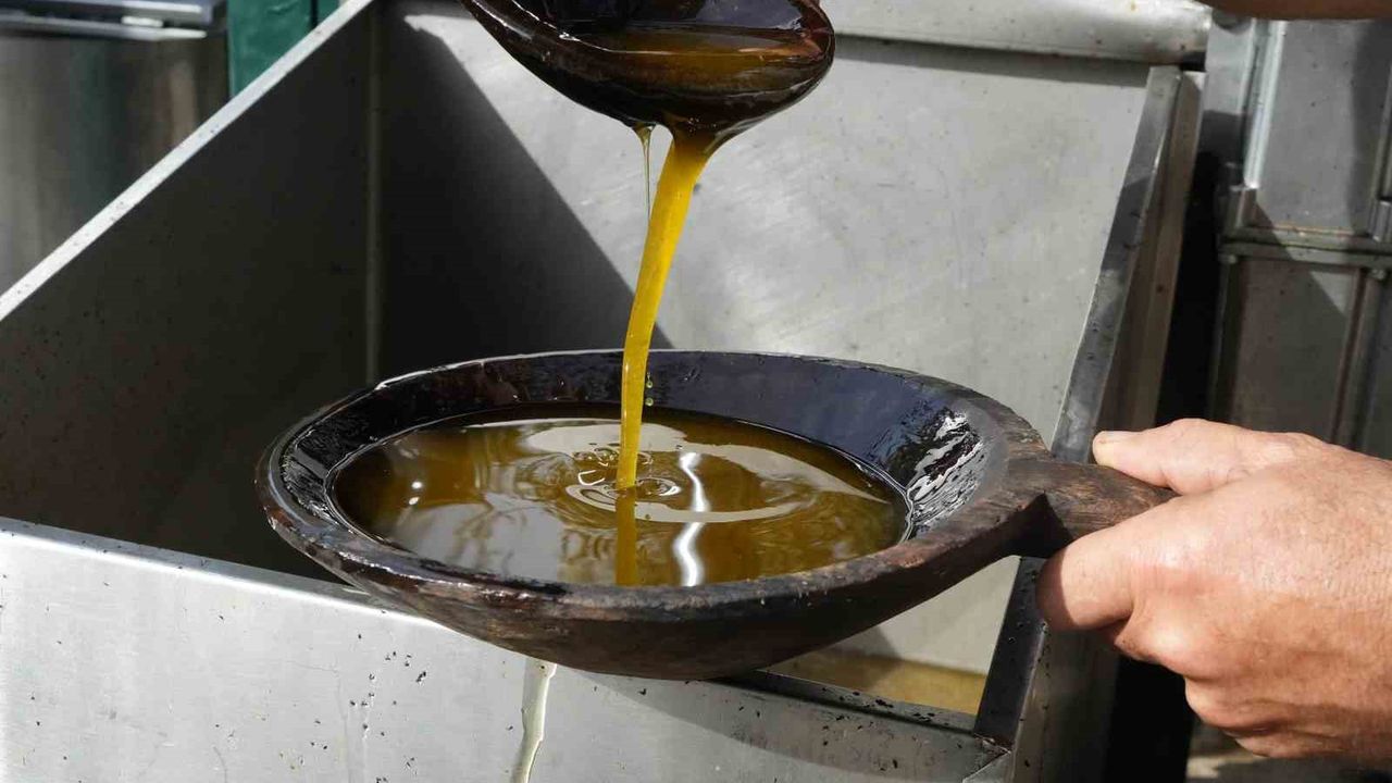Balıkesir'in Ayvalık ilçesinde Erdinç Tügen, dede yadigarı taş baskı yöntemiyle zeytinyağını en doğal haliyle üretip gelecek nesillere aktarıyor.