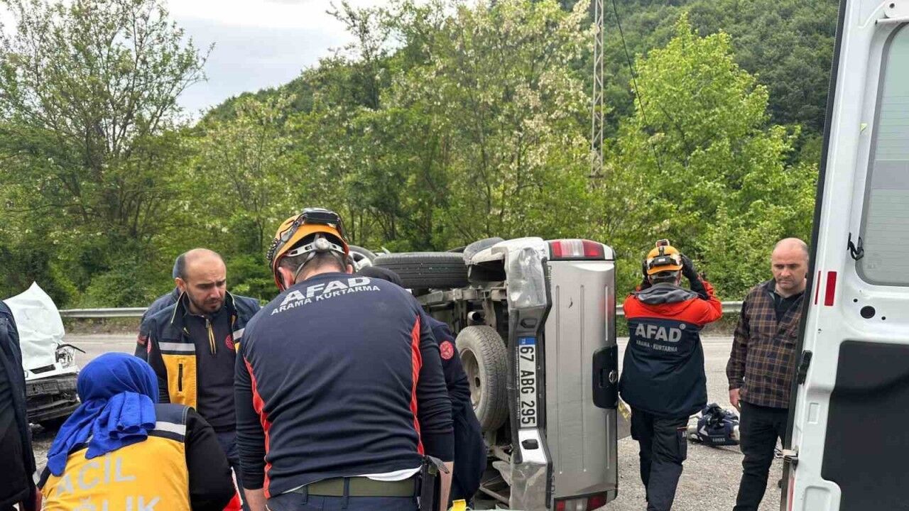 Kaza, saat 12.00 sıralarında Karaman beldesinde meydana geldi. B.K. idaresindeki 67 ADH 876 plakalı araç ile Ş.K. yönetimindeki 67 ABG 295 plakalı araç henüz belirlenemeyen bir nedenle çarpıştı. Çarpışmanın etkisiyle 67 ABG 295 plakalı araç devrilerek yan yattı. Kazayı gören vatandaşların ihbarı üzerine olay yerine sağlık ve polis ekipleri sevk edildi. Kazada hafif şekilde yaralanan her iki aracın sürücüsü tedbir amaçlı hastaneye kaldırıldı. Yaralıların sağlık durumlarının iyi olduğu öğrenildi.